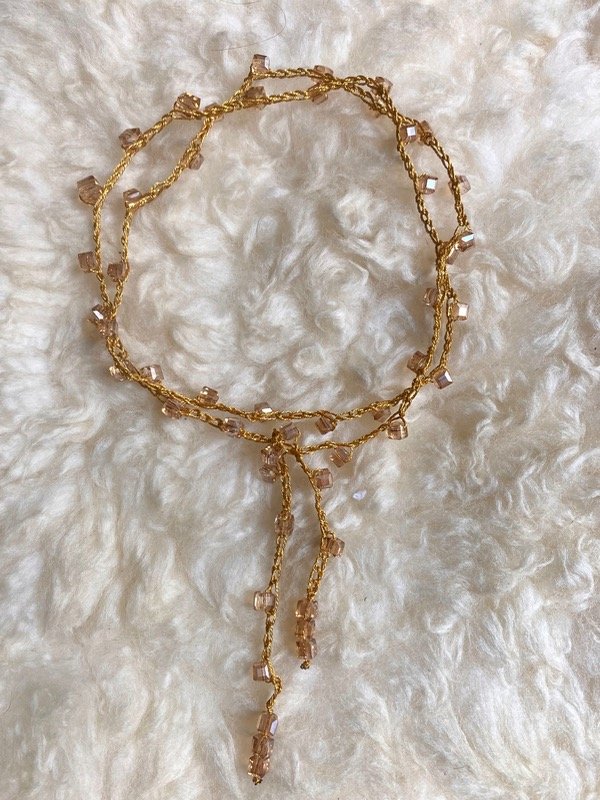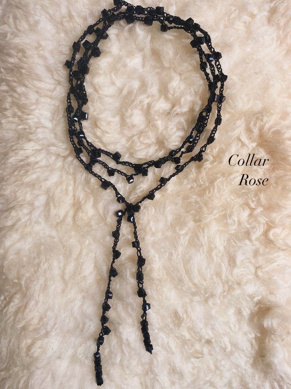 Collar hecho a mano- Tejido a crochet con piedras de vidrio facetadas