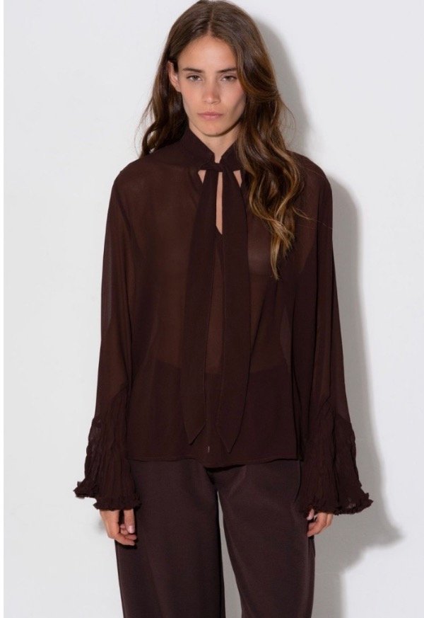 Camisa con lazo en cuello, podes llevarlo atado para un look más formal o desatado para un look más relajado. TALLE ÚNICO